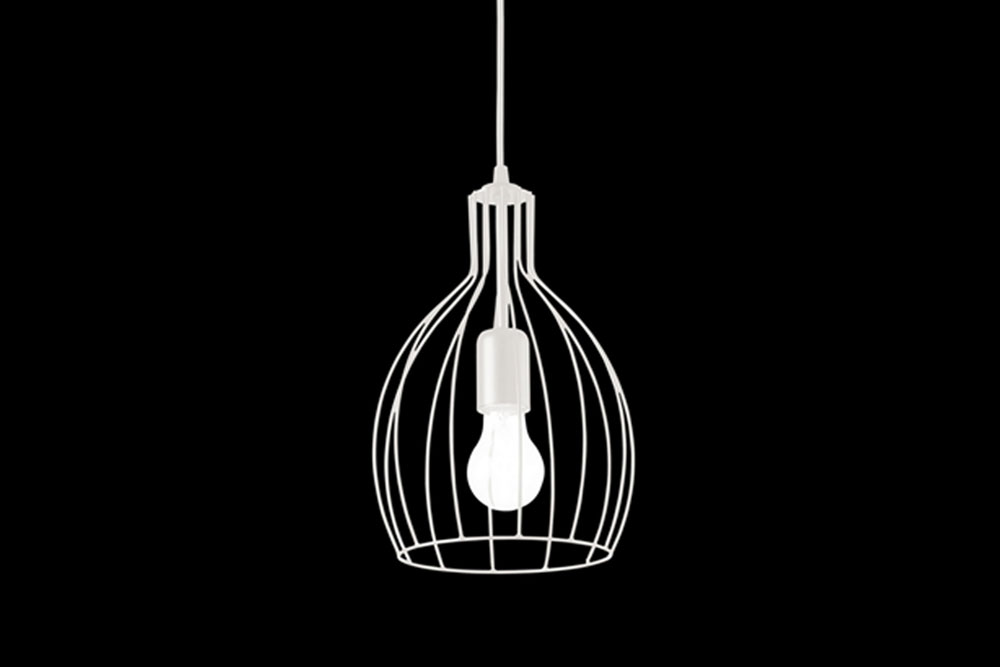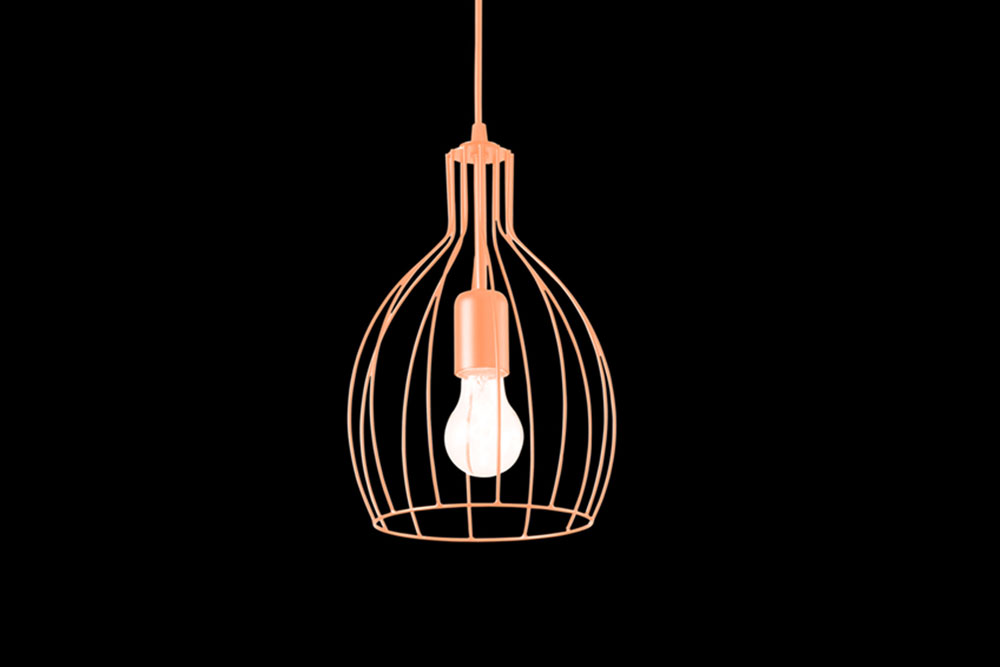 Lampada a sospensione con struttura decorativa in metallo disponibile in 3 finiture (bianco, nero e rame).