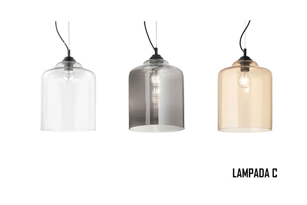 - Lampada C: Ø 24 cm x H.34 cm – Peso: 1,90 Kg