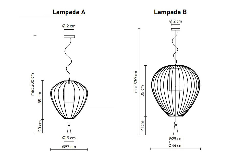- Lampada B: Ø 84 cm x H.89 cm – Peso: 8,5 Kg