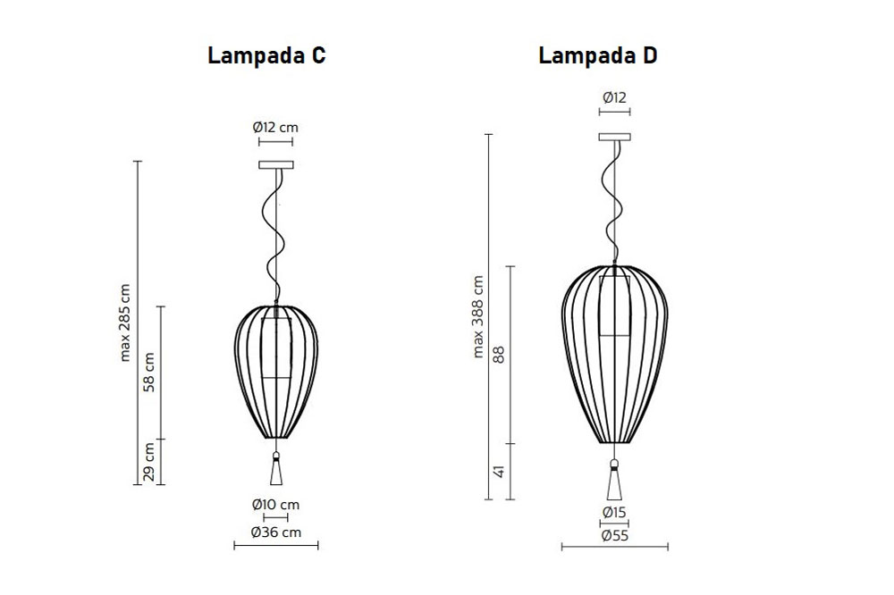 - Lampada D: Ø 55 cm x H.88 cm – Peso: 5 Kg